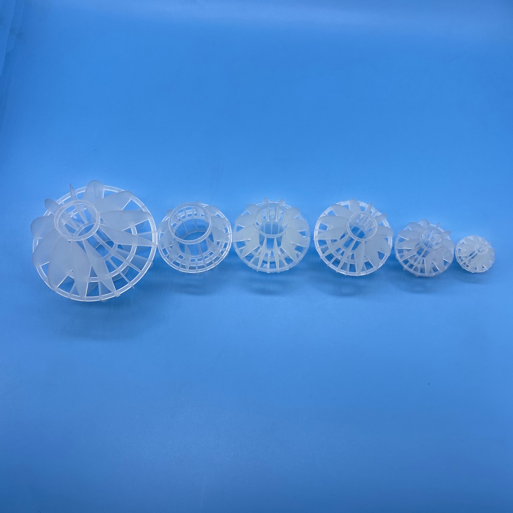 該產(chǎn)品采用聚丙烯塑料制成球狀,在球中部沿整個周長有一道加固環(huán),環(huán)的上下各有十二片球瓣,沿中心軸呈放射性布置,由于表面積大,傳質(zhì)效率高,產(chǎn)品的球瓣于球瓣之間空間大,且重量輕 強度大,安裝方便,耐高溫 耐腐蝕,性能穩(wěn)定。
