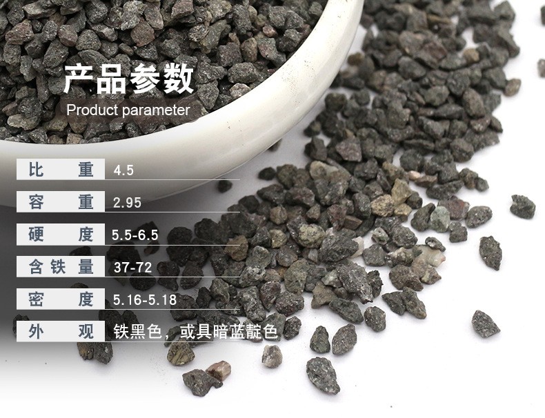 磁鐵礦濾料是一種多層水處理濾料,也是常見的一種水過濾濾料,在地下水 工業(yè)中循環(huán)水 鍋爐補(bǔ)水等中用可以除鐵 除猛 除氧。在重金屬廢水中使用效果很好。